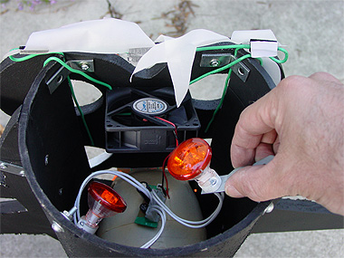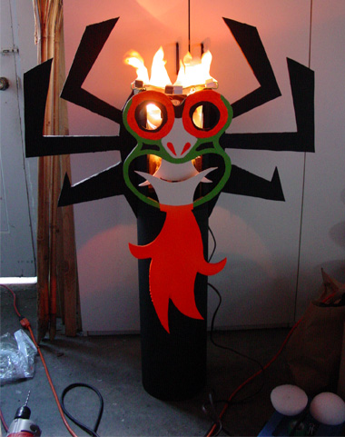 Installing the cauldron fan and lights inside Aku's head. Test run shown below (very happy with the results).